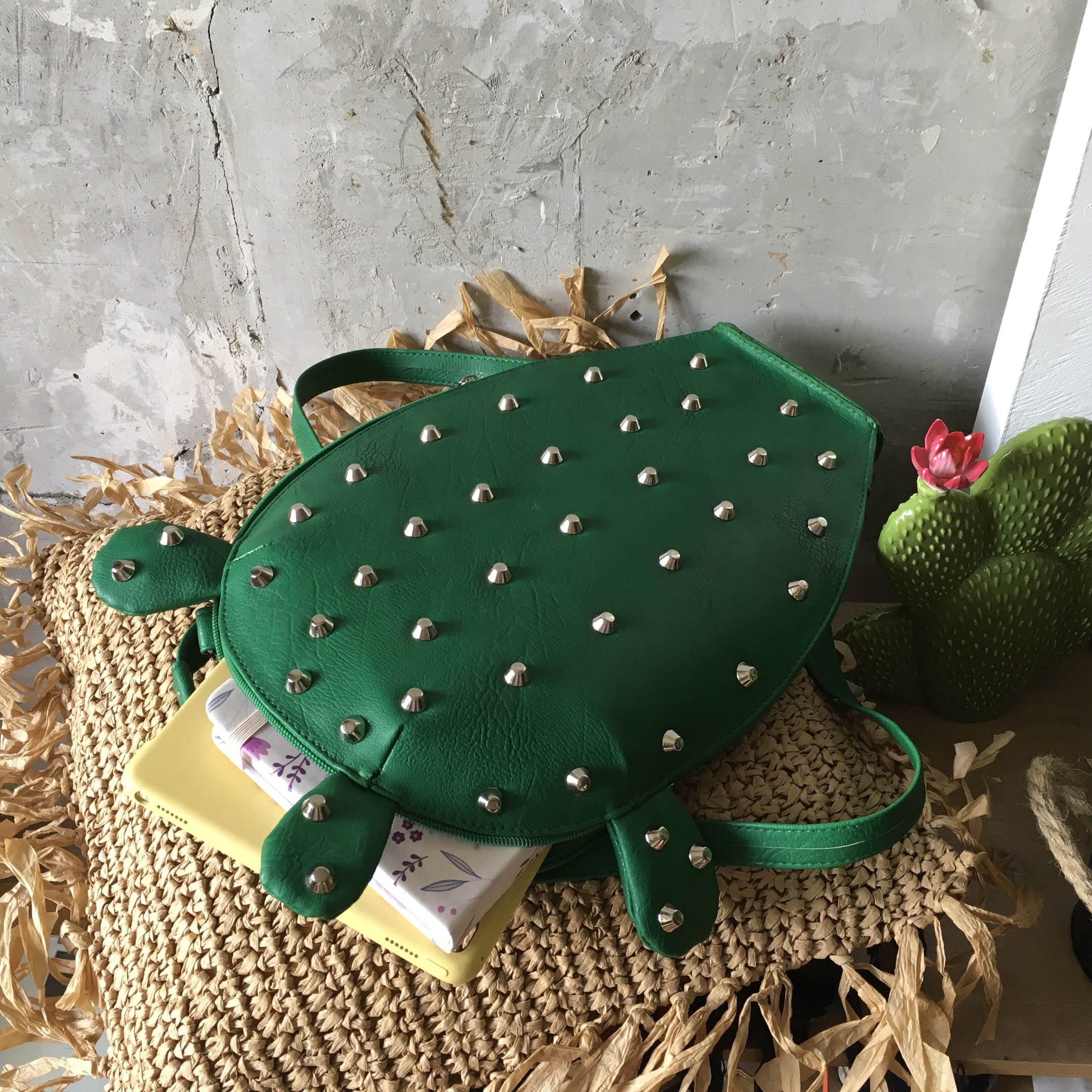 This is our “cactus art” model, the Prickly Pear Cactus backpack. Slim and sturdy, it fits iPad Pro 9.7. And it’s a sure eye-catcher and a conversation starter!!!